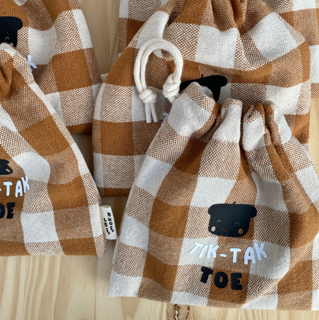 La pochette se ferme par un cordon coulissant facile à manipuler, même par les petites mains.